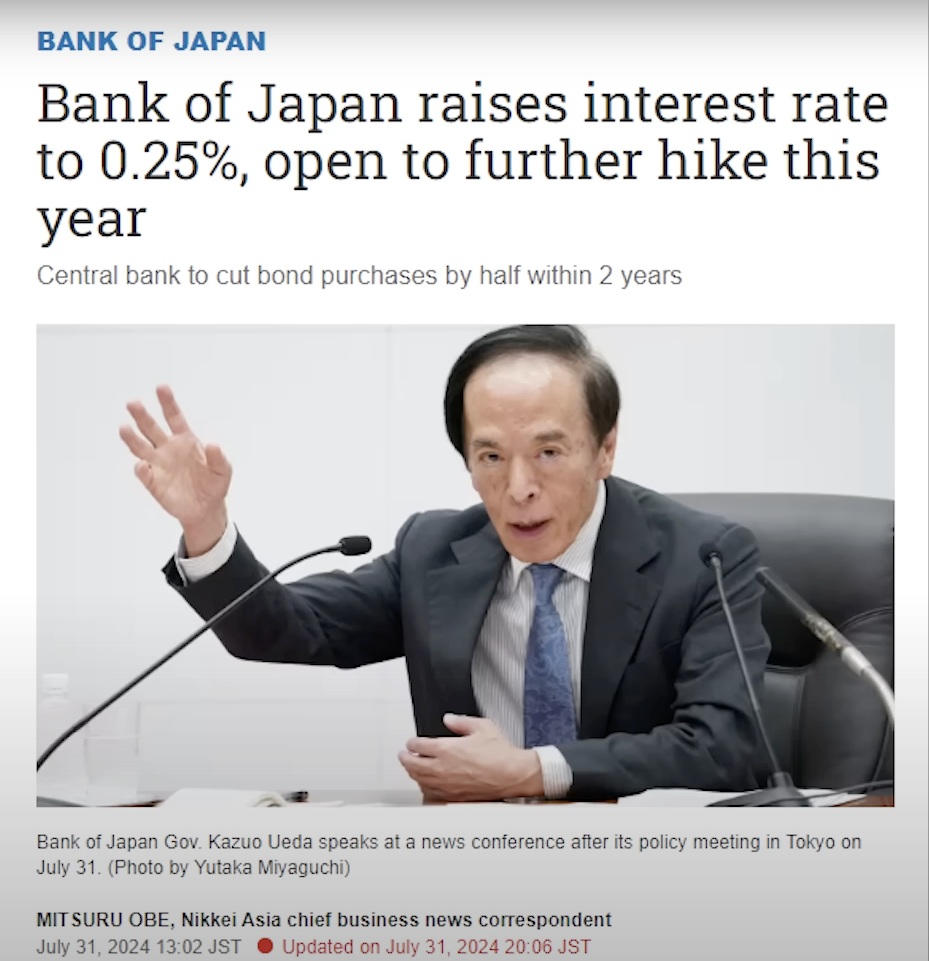 Sin embargo, el 31/7/24 observamos que el BoJ decide subir tipos de interés del 0%