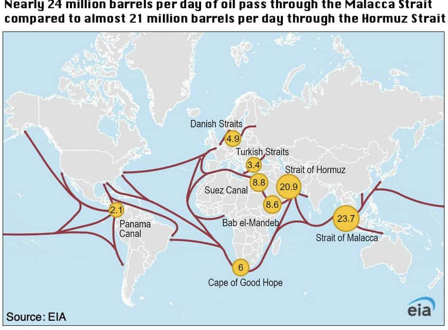 A su vez, el Estrecho de Malaca, toma mayor relevancia.